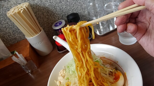 今日は辛味噌タンメン、前回2辛で食べて美味しかったのと、他の方が3辛を食べられていたので、私はその上の4辛を食べてみることにしました。