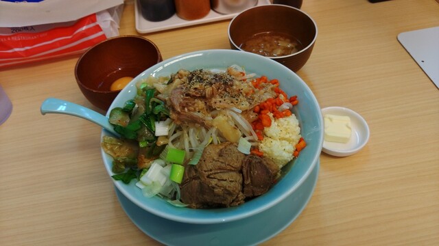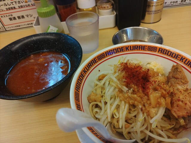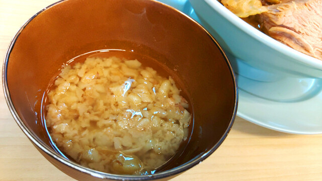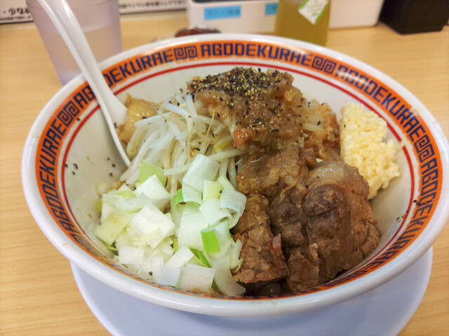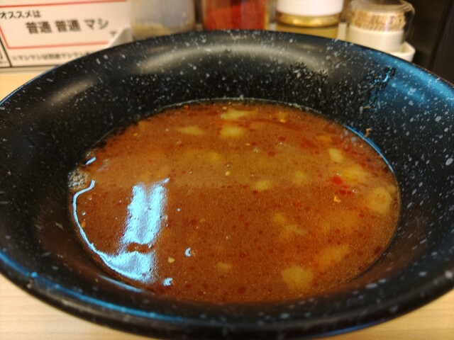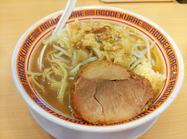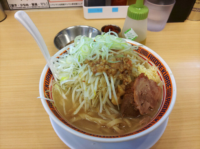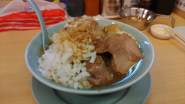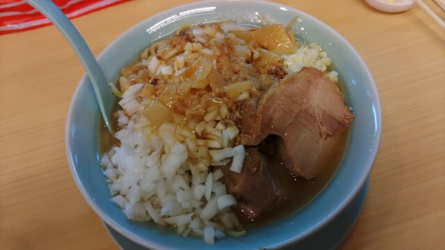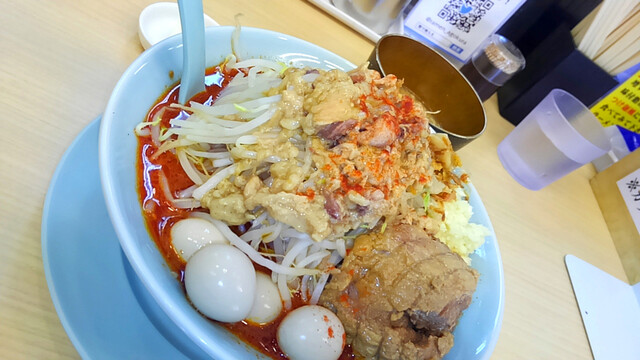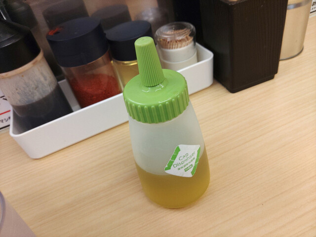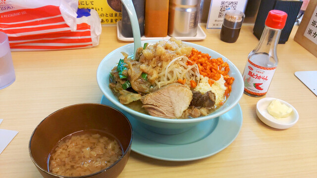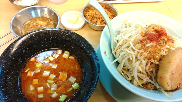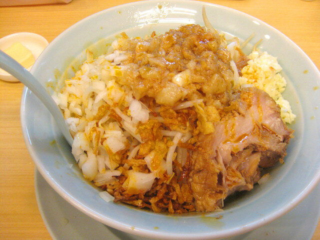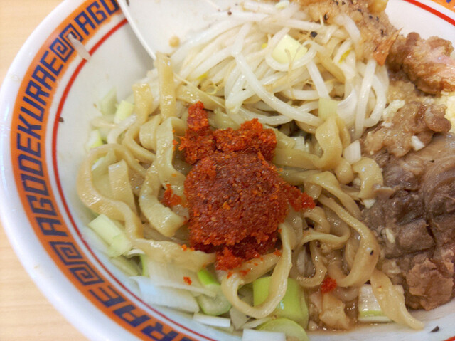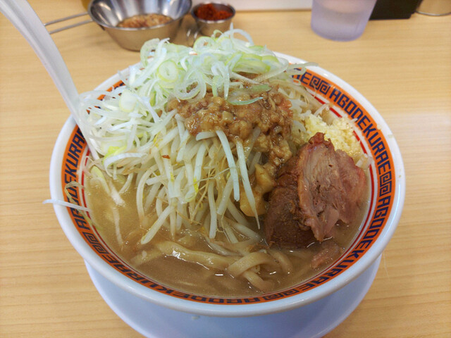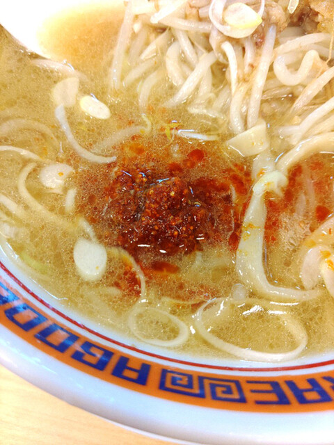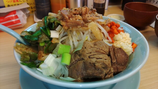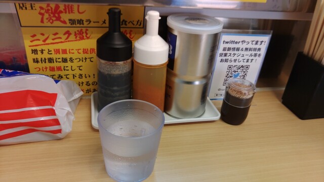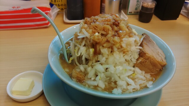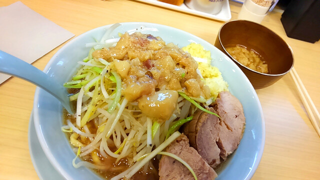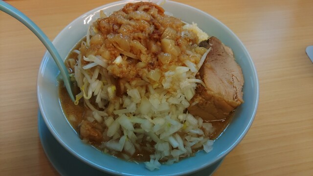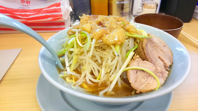 コールはヤサイ普通ニンニク少な目アブラ普通、そして山椒油もお願いしました。