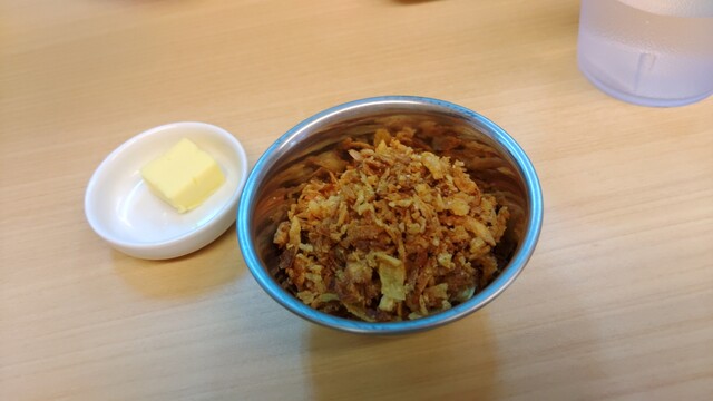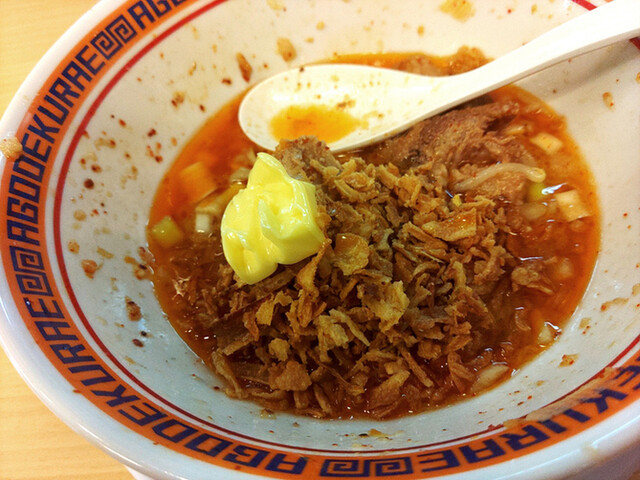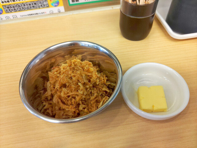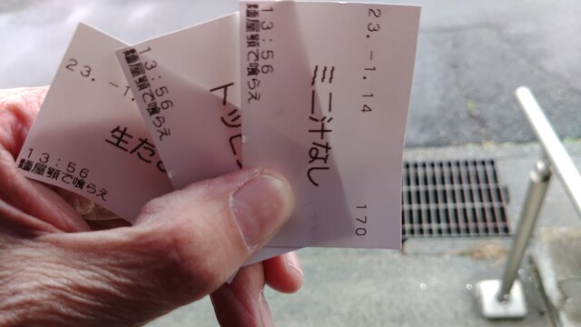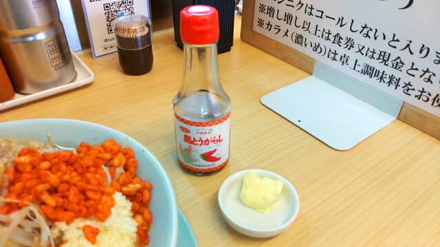 食券を購入したのは小ラーメンとトッピング券。オーダーは麺カタメでトッピングで辛いやつです。