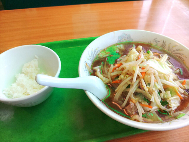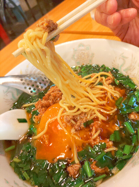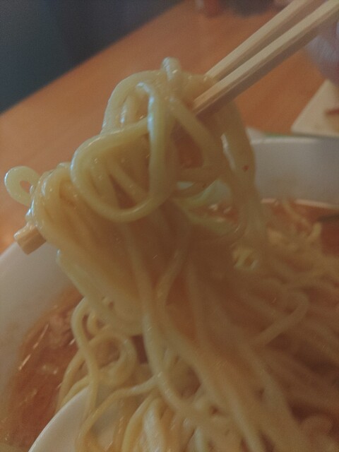 スープを1口、モヤシと挽肉に刻まれたニラが散りばめられたこの味噌スープは絶対王者です。自家製麺を掬いだしながら食べ進めていきます。