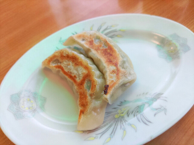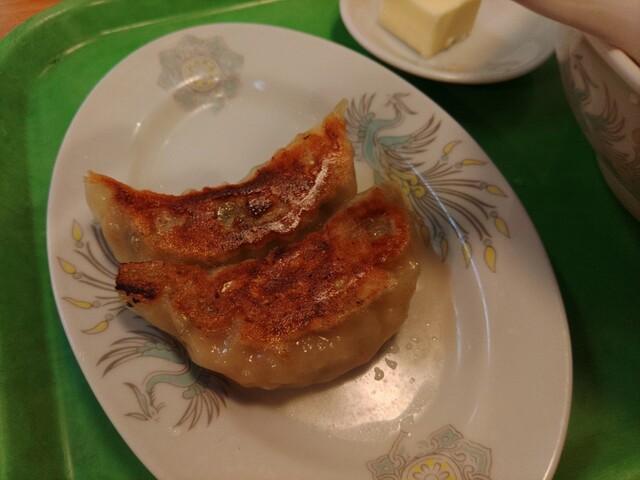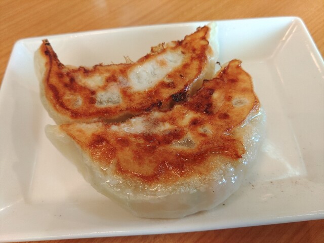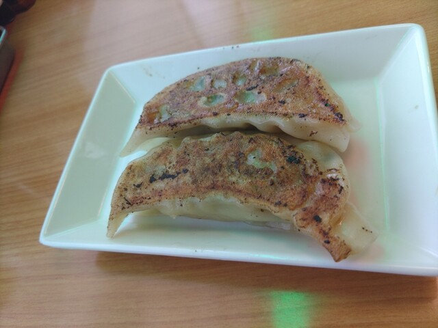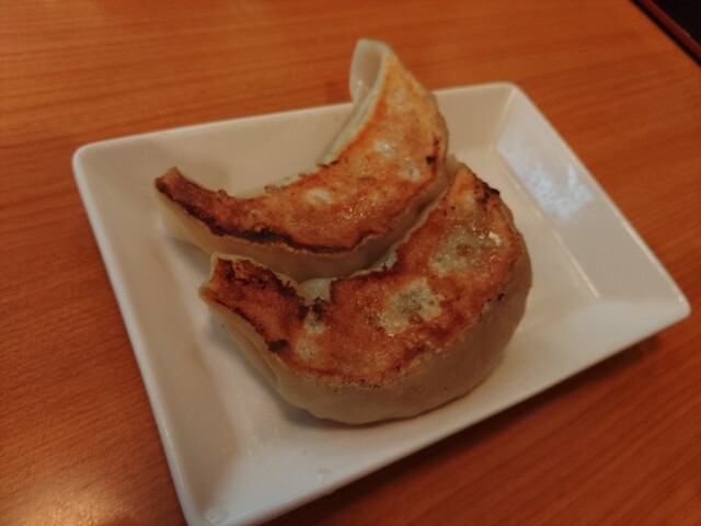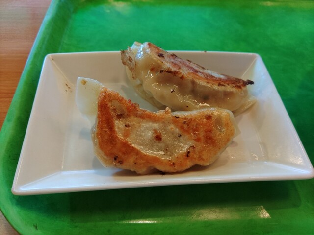 大きいお店で包まれた餃子2個、齧るとジューシーな餡が堪らなく美味しい。自分は味噌ラーメンのスープをこの案の中にレンゲで入れて食べるのが好きな食べ方です。
