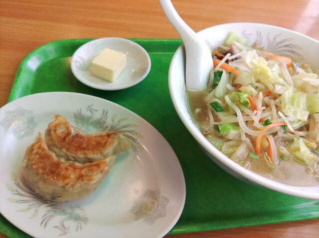 2人ともオーダーは今日の日替わりの味噌ラーメン。ライスは無しでの餃子とのセットにしてもらい、私は麺カタメとバターのトッピングです。