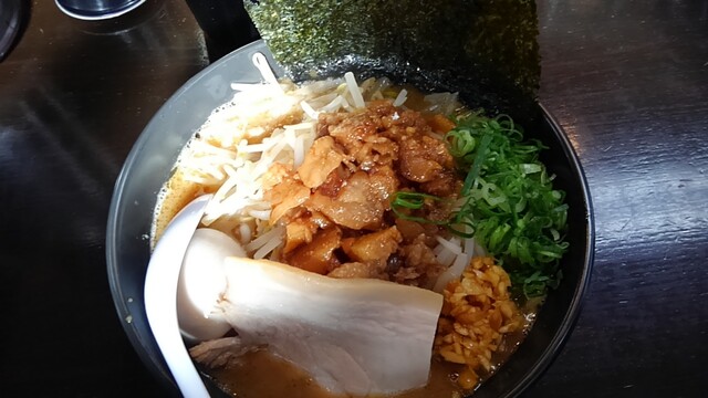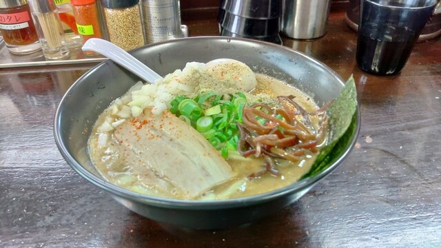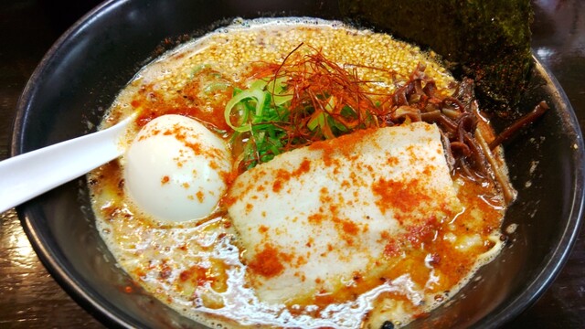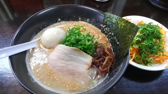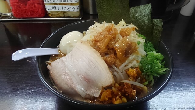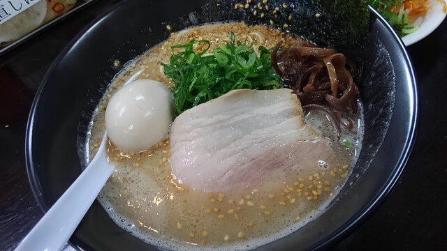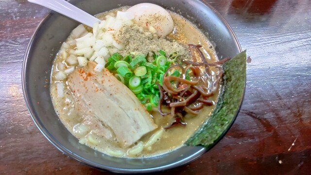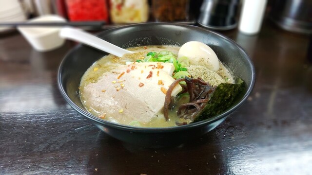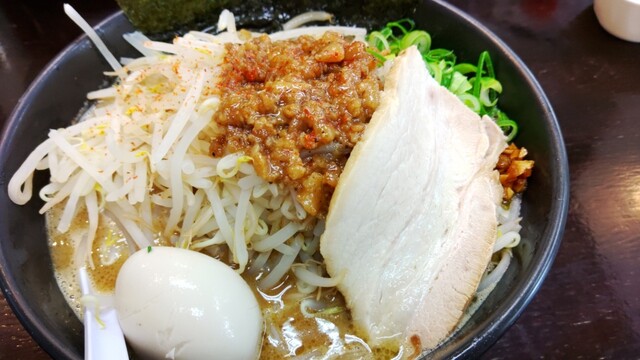 麺バリカタ、アブラ多めでのオーダーです。店長、味玉サービスに感謝!