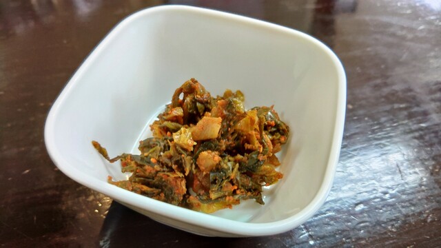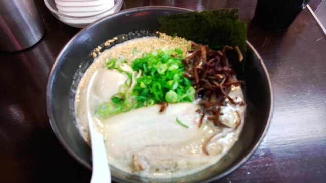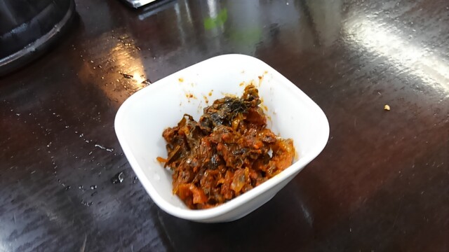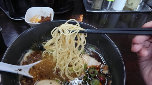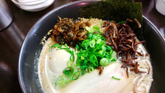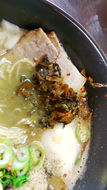 そしてここにニンニクと激辛高菜を投下、味変かも素晴らしく、でも半替玉は今回しませんでした。仕事であまり動かないので我慢(笑)
