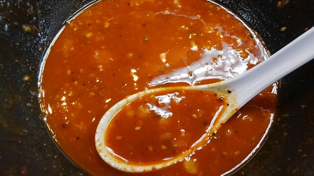 今日は朝から体調ダメなので、辛さで温めようとしましたが、辛く感じられ替え玉もできなかったです。スープは飲み干しは止めておきました。