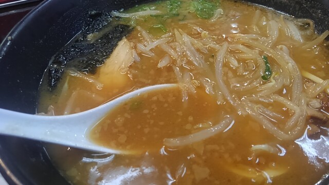 大量のモヤシの山に背脂がドカンと乗っていますが、アブラ最初からスープに溶かしちゃいましたが、最初にそのまま食べればよかったと後悔。次回は食べよう!