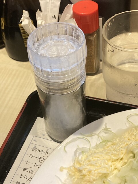 上ロースカツ定食¥1600+おろしポン酢¥300【¥1900】⇒上ロースカツ定食(ドレッシング類を含め)¥2390+おろしポン酢¥500+居心地¥200+布おしぼり¥100【¥3190位】。
