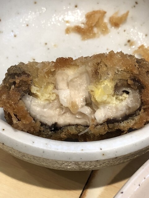 とんかつや椎茸フライの茶色い衣と比べて白っぽいね。ワザとなのかな?