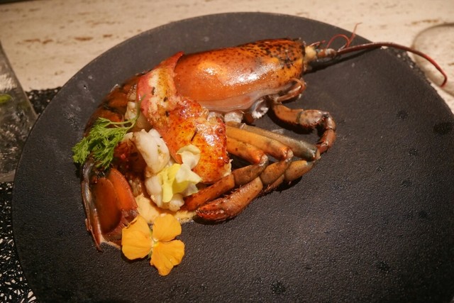 15000円の活ロブスター1匹付コース Lobster Tonightは、目の前でいきのいいロブスターを豪快に調理してくれ、