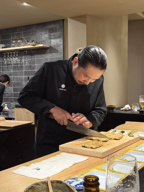 滋賀県高島市の築100年以上の古民家をリノベーションした割烹オーベルジュ「Auberge RUKAWA」。琵琶湖の湖魚や鰻、ジビエを軸に、囲炉裏とオープンキッチンで臨場感たっぷりの料理を楽しませてくれる。
