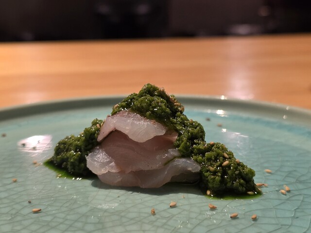 今年2月にシェフが交代したばかり。30歳の若い料理人が店を引き継いでいます。北海道・留萌出身で、辻調理師専門学校を出た後、大阪の「田中圭英」や福岡の「巴蜀」などで経験を積んで故郷に戻ってきたとのこと。