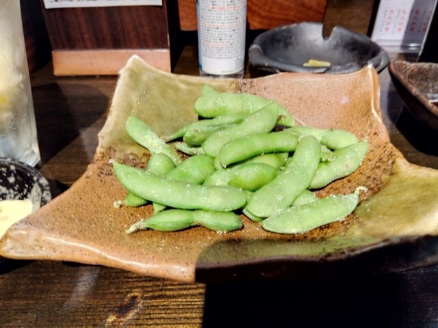 すぐに瓶ビール(アサヒスーパードライ)が、追ってお通しが来ました。