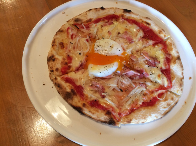 リピート必須のログハウスの石釜ピザ