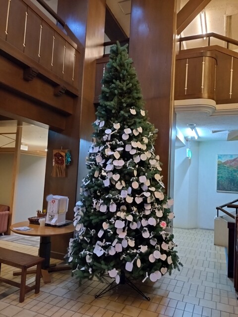 ロビーには【恋みくじ】やメッセージカードを吊るす大きなツリーがあり、