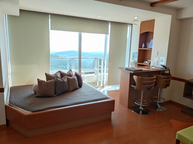お部屋にはベッドの他に寝ころべるスペースもあり、お洒落なカウンターも♡