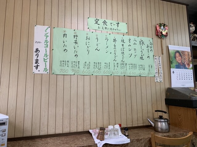 待っている間に横カウンターからグラスを取ってヤカンからお茶を入れてくれるパパさん。無くなったから更に横のテーブル席からヤカンを取り、お母さんに空のヤカンを渡す。