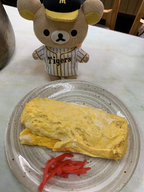卵焼きには紅生姜が添えられ、柔らかく焼かれている。少しだけお醤油をかけていただく。この追加は必要枠です、うん。