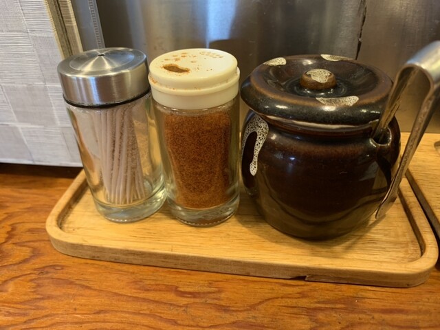 パパさんは一味を振りかけて味変も楽しんでいる。
