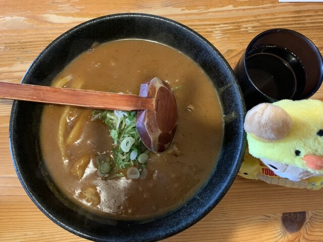 ( ゚д゚)ンマッ! うどんのコシがすごい。周りは柔らかいけれど中心には硬さが残り、手打ち太麺で食べ応えがあり過ぎる。