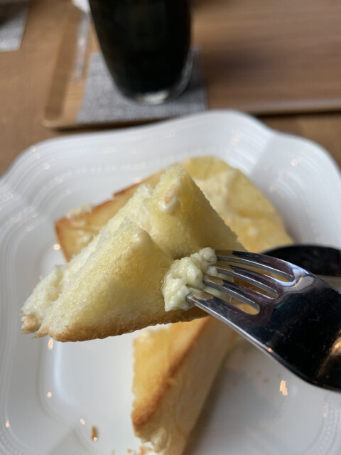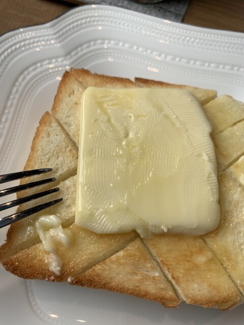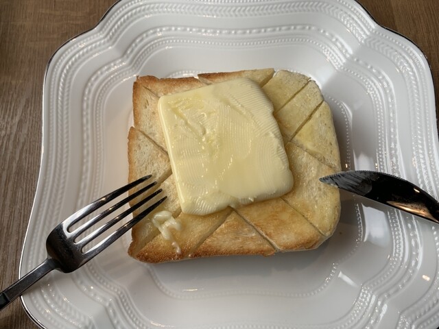 しっかりとトーストに切り込みが入っているので、そこからバターが入り込みジュワジュワな贅沢感が味わえる。では、いただきまーす♪