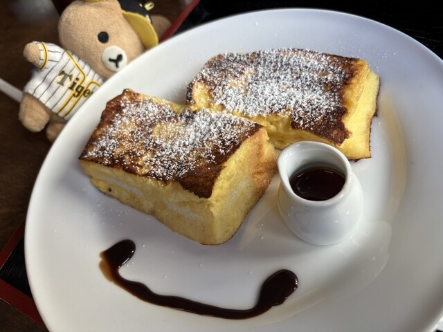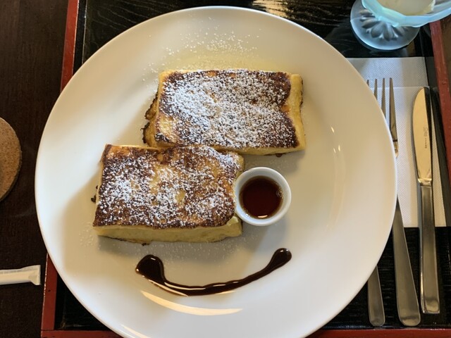 お腹が空いているからとオムライスを指差したので、中身。はまたもやフレンチトーストに挑んでみた。ドリンコセットでお願いする。