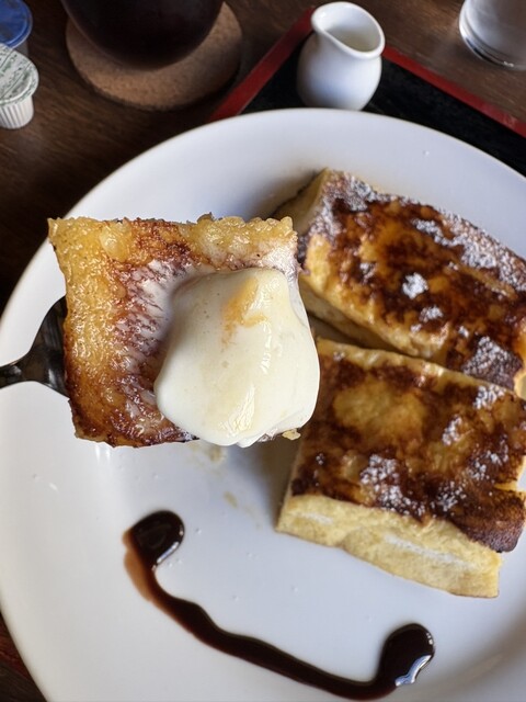 お昼ごはんにフレンチトーストって、何か贅沢な気分になるのは中身。だけかしらん。