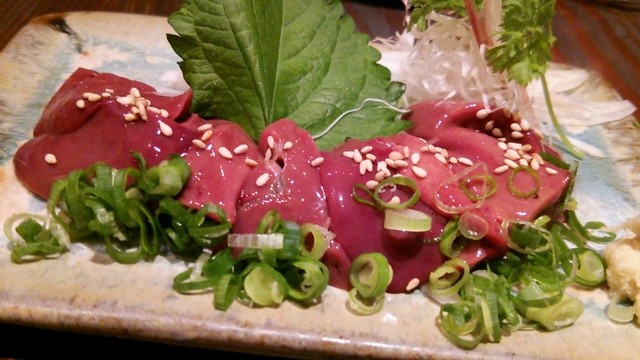 まず、これを食べなきゃ始まらない、ということでレバ刺し。