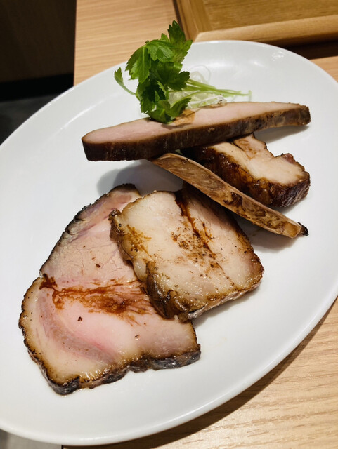 鶏チャーは相変わらずのプリンプリンの食感で自分的に全国No. 1。そして変更のあった吊し焼きチャーは燻香が鼻腔を刺激して超美味い。もう一種類プリンプリンの豚チャー。
