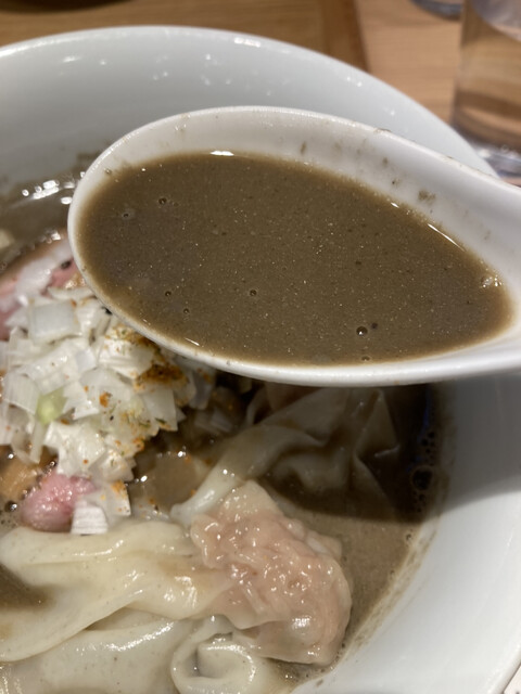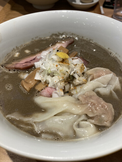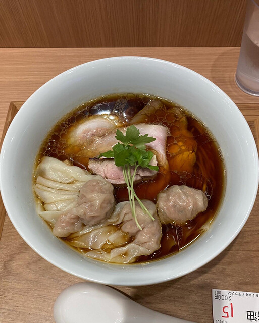 ツルツルの自家製麺も喉ごし良く加水率もこのスープにバッチリ、注文を受けてから餡を詰めるワンタンもツルッとした自家製の皮、餡は肉肉しくジューシーで旨い。
