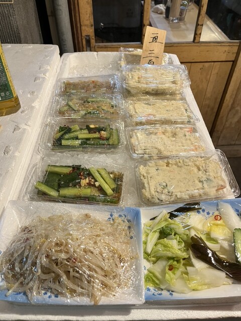 店先のテーブルには、パック詰めされたお惣菜がズラリ。