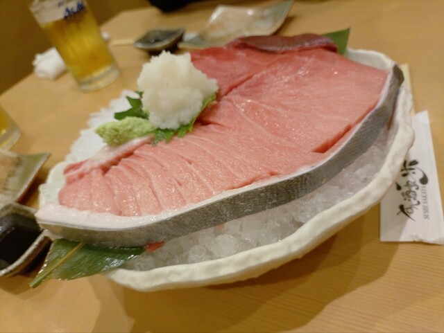 前回来た時に張り紙を観て気になっていた、前日までの予約限定メニューまぐろの断面刺2728円(税込)をお願いしときました。