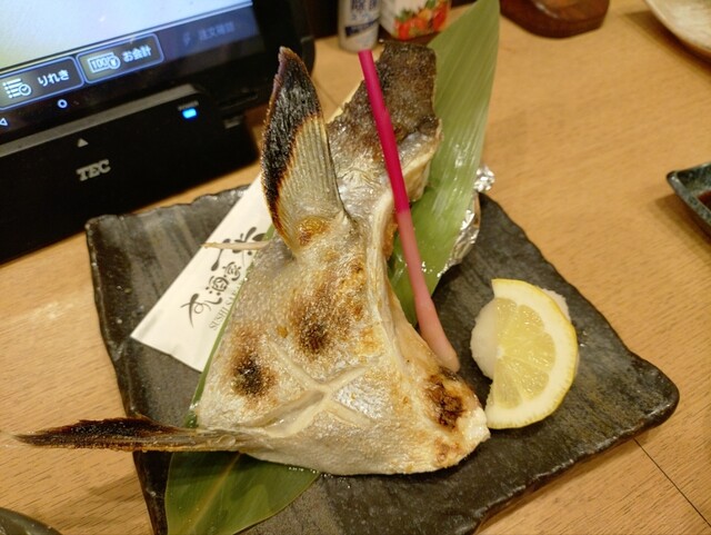 ブリカマ焼きは見事な焼き加減で、ヒレも美しい!