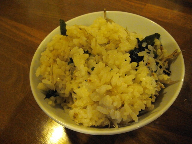 サイドメニューの炊き込みごはんも和風出汁で美味しい。
