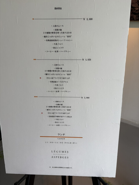お願いしたのは真ん中のコース。そしてワインは北海道産の白。にんじんのペースト。頭から野菜の滋味が溢れます。次の野菜の盛合せは小さなポーションに其々のの個性がびっちり詰まっていて感嘆。次の泡泡も甘みたっぷりです。この後、茹でたてのアスパラが来たのですが、写真撮り忘れ。感動の一品。メインは炭火焼で風味豊か。付け合わせの玉葱。川ごと頂き、スープも頂戴しました。うーん。興奮。デザートの牛乳のソルベは美瑛牧場のでしょうか。濃厚でフレッシュ。最後まで楽しませてくださいました。〆にはハーブティー。ハーブティーが飲みたくなります。