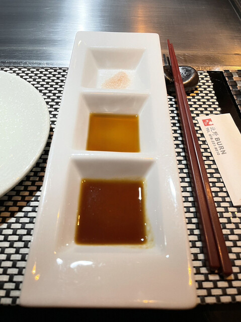 そして魚、お魚は皮めパリパリ身はふっくら。どて煮の辺りで次の飲物を勧められました。このアプローチの仕方、プロです。絶妙に上手い。すみません。失念しましたが、初めて聞いた飲物を注文。(軽いアルコール、甘味あり)そしてお肉、神戸牛ではありませんが、和牛です。オプションで1人分肉のランクを上げました。正解。あー、食べた鉄板焼き。と思える満足感。お肉の種類を変えるのオススメですね。こんな所も上手。このお姉様、美しい上に仕事できます。凄いな。
