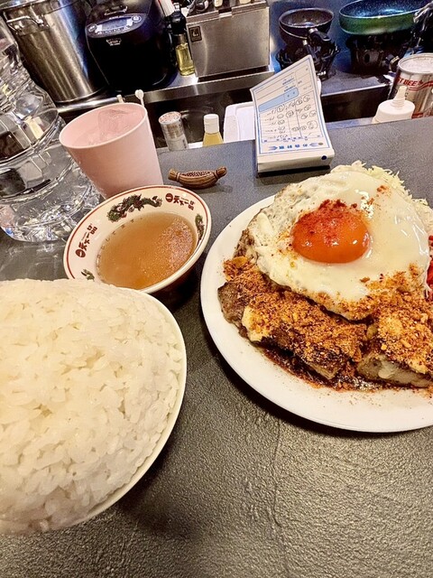 店内はこじんまりとしたカウンター席メインでコック帽を被ったご高齢のご主人が、フライパンを振るい、奥...