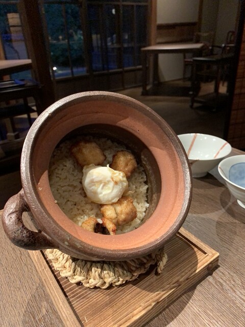 ・揚げた鱧の炊き込みご飯・・面白いこと考えますね。普通に美味しい窯のご飯でした。