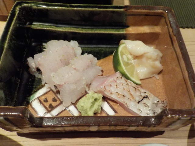 ・お刺身:はも/のどぐろ/石垣貝>一口ずつですが季節のお刺身が食べられて嬉しかった