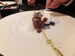 フォンダショコラ ピスタチオのクリームとチェリー、ミルクのアイスは、当然赤ワインにも合いました。