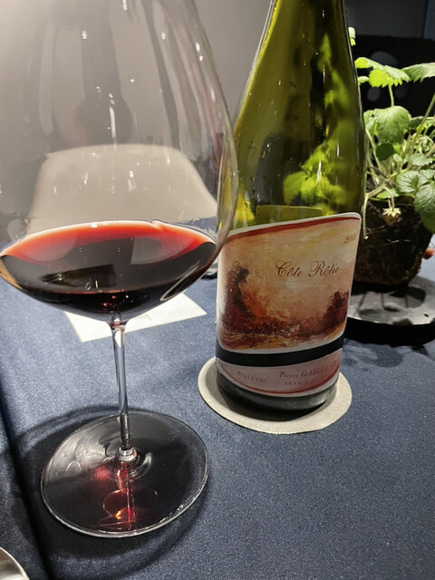ワインは、ローヌのグルナッシュ、シラーの凝縮した果実味、エキゾチックな熟成した香りが、ジビエとハーモニーしてました。
