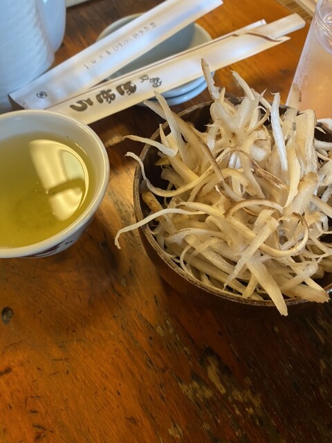 ネギと、別で注文しましたごぼうのささがきを乗せて軽く火を通します。