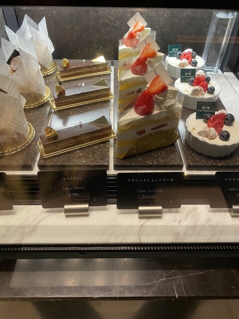 ホテルの中にあるケーキ屋さんで生菓子のケーキも焼き菓子もパンも綺麗にディスプレーされていて美味しそうでした。