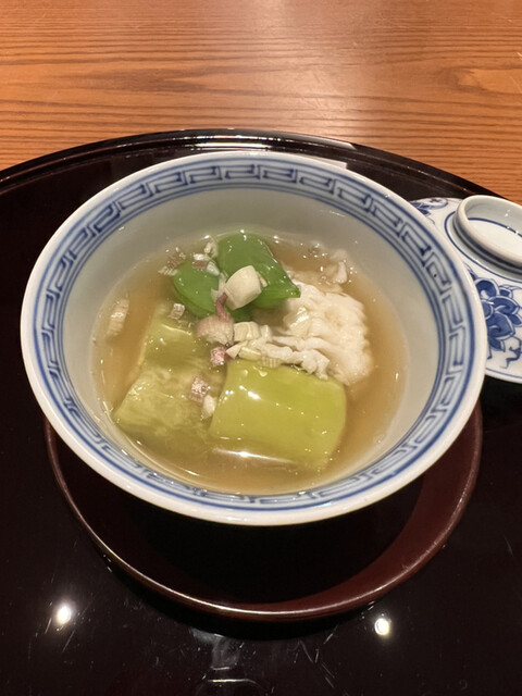 腕物もヤングコーンのひげ、冬瓜、しんじょうでした。器も素敵で たまらなく美味しいお出汁ですね。