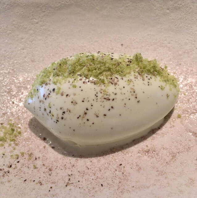…古代のチーズ"ソ"とレモンの皮、ホワイトアスパラガスとそのクリームでシンプルに。