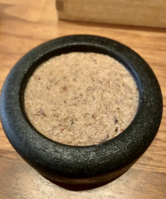 左:豚の背脂・ローズマリー・塩で仕上げたのクリーム 右:アンチョビと豆乳のクリーム