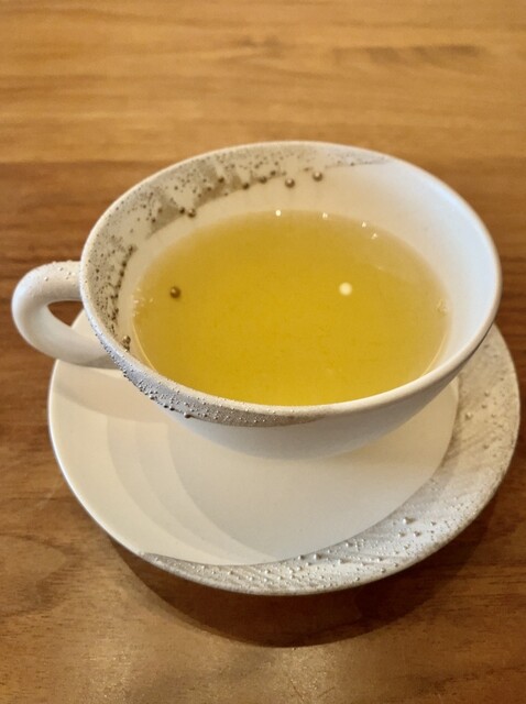 先ずはウェイティングルームにて、 "(ウェルカムドリンク)ペパーミントと木の芽のハーブティー" をいただきました。とても爽やかな口あたり(^^)