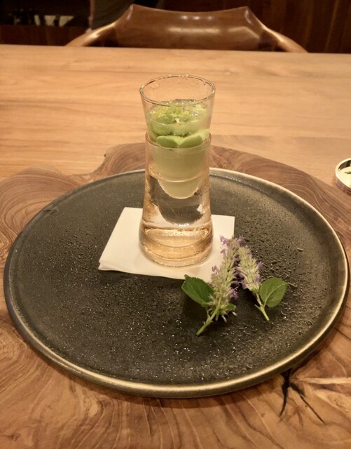 定刻より少し早く入店し、いつも通り1階ウェイティングルームで、ウェルカムドリンクから。この日は、