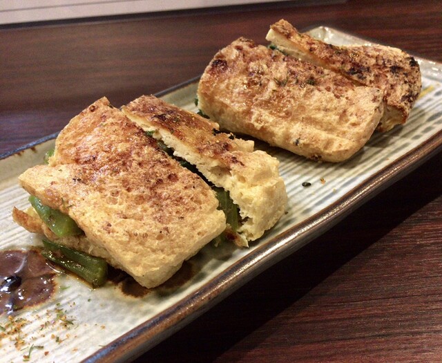 ■口取り…ササミの磯辺揚げ、がんも、菜の花のワサビ〜:400円