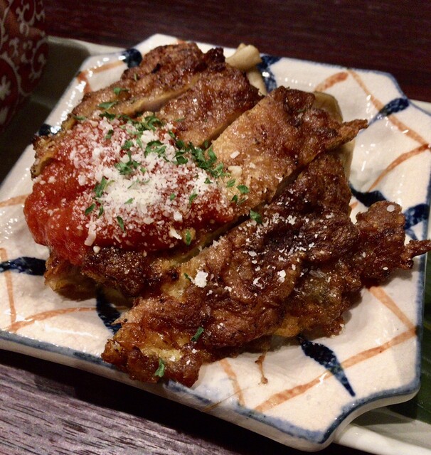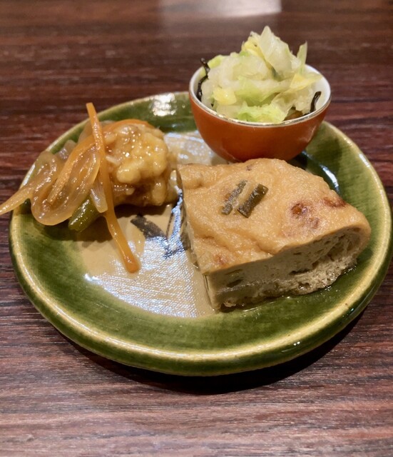 おまかせおばんざい3種盛り ⑴茄子と鶏皮の南蛮漬け ⑵恵那どりとカブの白味噌煮 ⑶三浦豚のピカタ