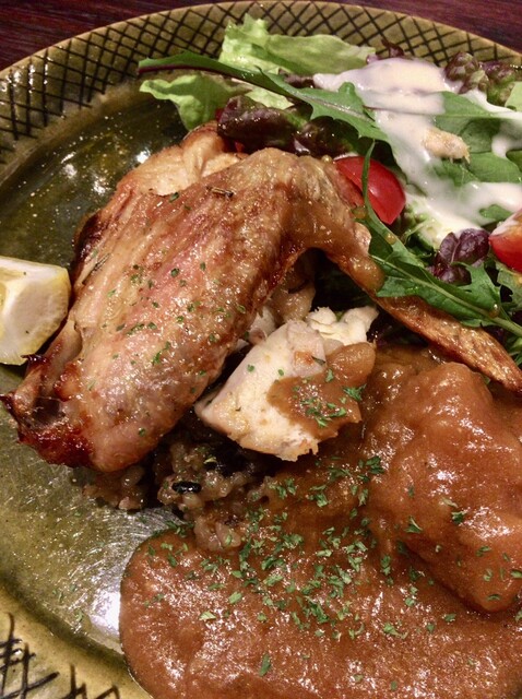 その後、メインディッシュになる"ローストチキン(手羽)"が到着!こんないい感じにプレートで盛られて出てくるとは思わなかった♪中に詰めてあった五穀米や、手羽近くの部位もあり、ボリュームもあってGOOD!